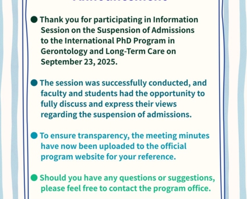 【Meeting Minutes Announcement】Information Session on the Suspension of Admissions to the International PhD Program in Gerontology and Long-Term Care